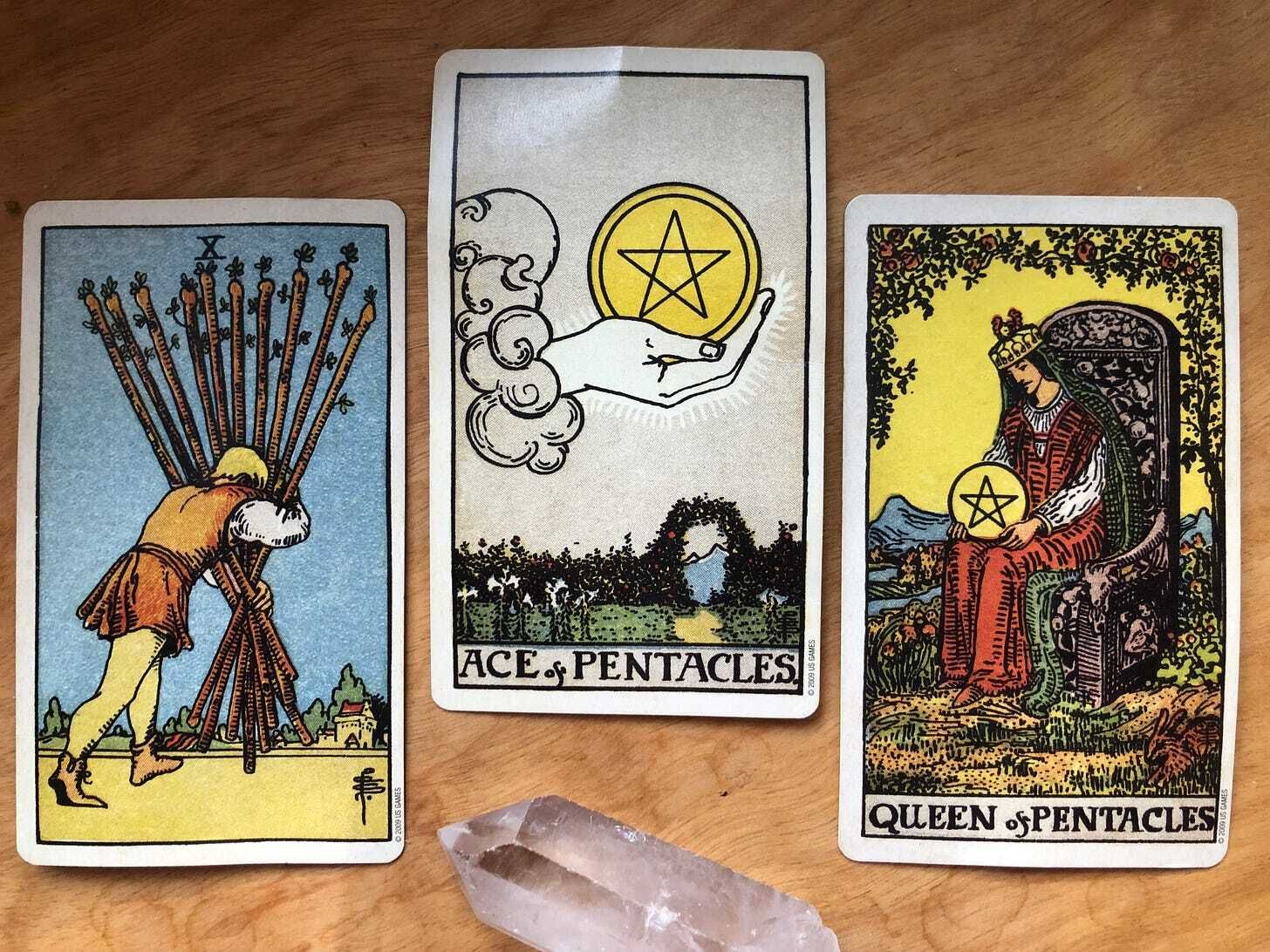A final word on the Ace here: this is a time when something that seems small has the longterm potential to take us somewhere impactful. The key to identifying it, however, is in how it makes you feel - self assured and grounded like the Queen of Pentacles? Or burdened with obligation like the Ten of Wands? This is a time when we’re close to touching a solution or new path that simply feels good and can skirt around our usual pitfalls. If you feel like you need to suffer to succeed, or that all forward motion needs to be plotted out and planned within an inch of its life, try to let go of these assumptions and follow what unfolds naturally and with ease. It may be uncomfortable at first, but I think that remaining closed off to these changes would be an absolute shame. And, after all, we’re practicing stepping into the Queen of Pentacles’ shoes; if practice makes perfect, why expect ourselves to be perfect just yet?