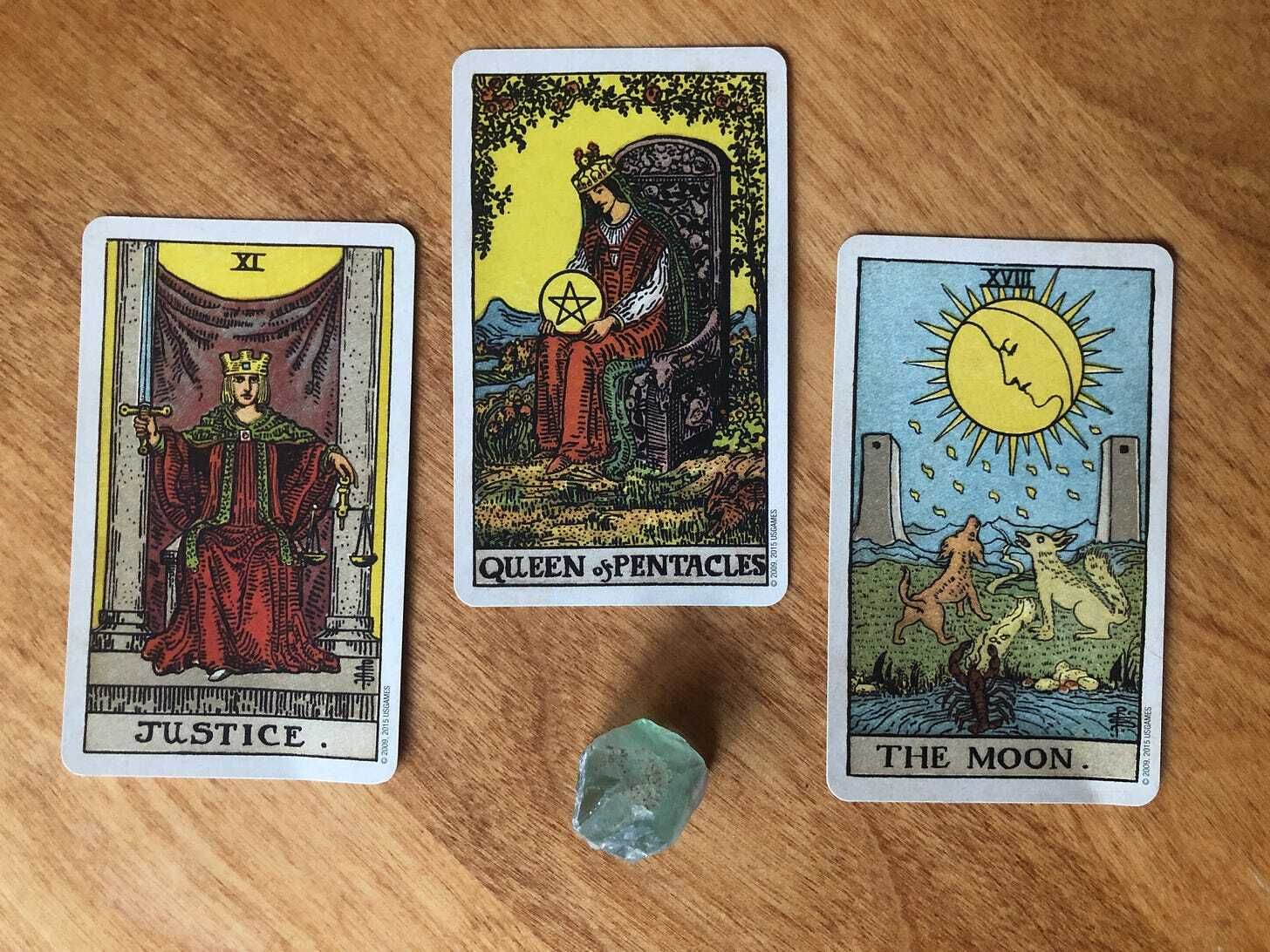 The Queen of Pentacles presides over the everyday - the home, the rhythms of our routines, the wisdom of our bodies, the act and practice of loving - and reminds us that each day gives us the opportunity to enact what matters most to us. The deepest magic is interwoven in the small repetitions; days, weeks, and years add up to a lifetime rich with the power of commitment.