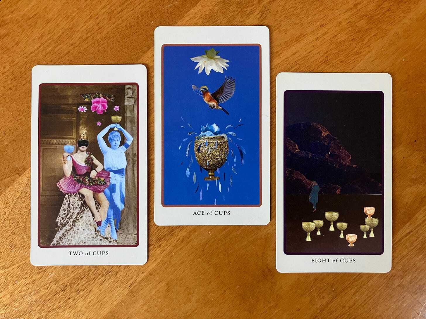 What a draw! This week’s reading features a straight run of cups cards. All in the minor arcana - not a court card in sight - they show a very clear sequence: A tender and authentic connection catalyzing (or creating) something new that requires us to step towards a meaningful change despite the absence of a clear path forward.