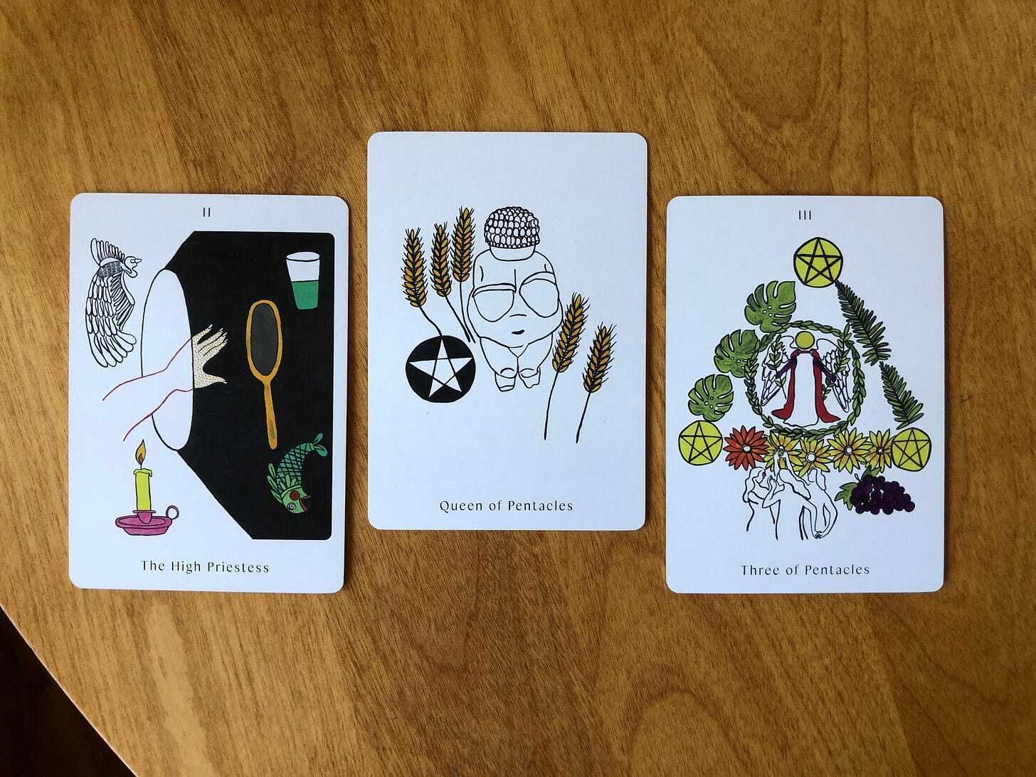 A shadow side of The High Priestess is getting “high on your own spiritual supply.” Wisdom is powerful, but ultimately meaningless if we don’t do anything with it. Thankfully, this week plants us firmly in the realm of the real. Two pentacles cards, the suit of earth, inspire us to make something out of all the meaning we’ve been uncovering. The Queen of Pentacles introduces this energy mid-week as we’re able to step out of the shadows of The High Priestess and into the details of our daily life. I won’t be coy; I love this. Entering this space under a Queen card also shows a sense of ease, as if we’ve been waiting for this moment. Don’t fight what comes naturally, even if it’s surprising.