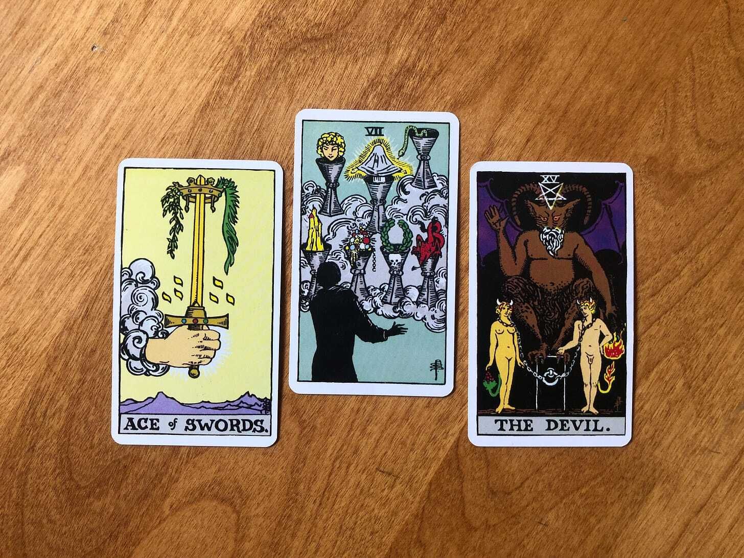 This week features a visit from a pivotal card in our monthly forecast: The Devil. While it’s a frightening image, its appearance in both of these readings could be positive in that it shows an opportunity for us to understand an issue (or issues) that we’re primed to overcome in the following weeks. So while this card is our final one, it’s where we’ll start. Our task this week is to prepare ourselves to face what’s bedeviling us.