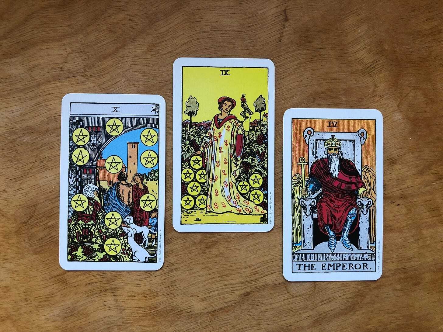 By the end of the week we’re ready to engage with The Emperor again. Because these two pentacles cards are so far along their sequence (and because we came into the week on the heels of The Empress), this feels more like a coming into power than a confrontation with power. In a sense, we’re being given a chance to codify the skills, protocols, and structures we’ve been organically adopting. Notice what works for you (not what you think should work for you or, even worse, someone else thinks should work for you) and take steps to make these a central part of your life. Be bold about it, too. The Emperor thrives on clear boundaries, claiming territory, and rules that give life structure. Doing this on a solid foundation of experience (the pentacles) and deeply felt meaning and power (The Empress) is a true recipe for enduring and authentic change.