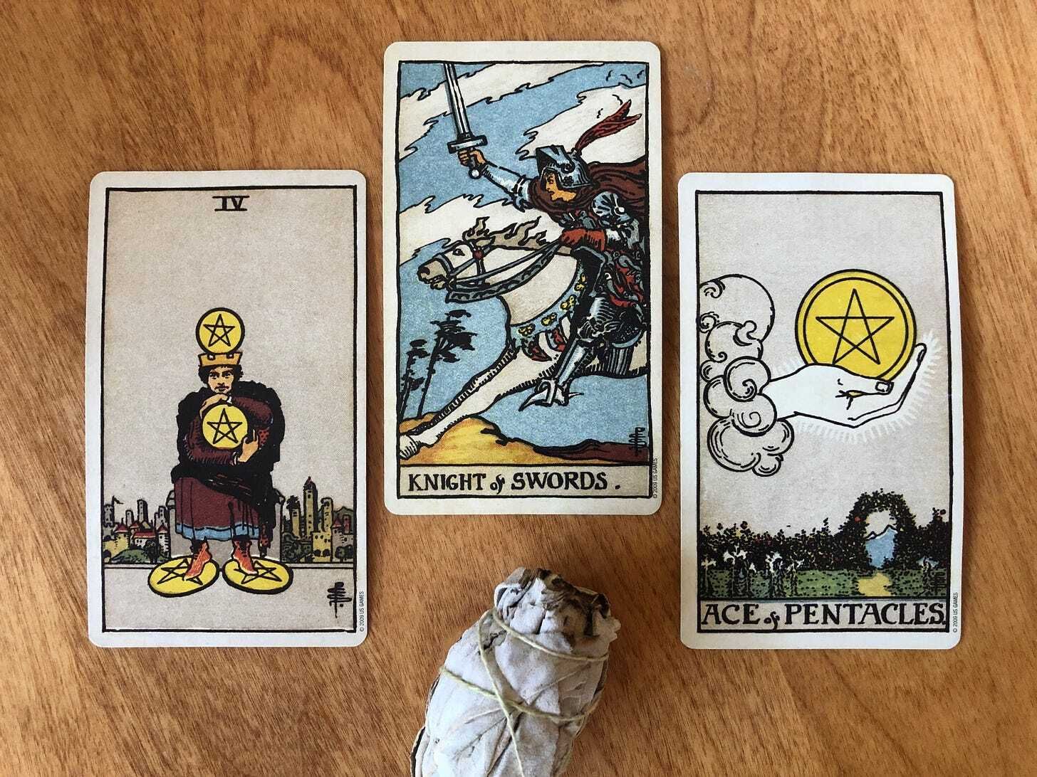 What does is mean to resist the urge to rush, pursue, and make meaning? This week we have a generative showdown between the slow-moving solidity of the pentacles and the lightening-fast, nimble and reactive Knight of Swords. I won’t mince words; it’s not a chill energy. It will feel sticky at times. But I think we’ve all been practicing inhabiting a healthy “Four of Pentacles mindset.” When needed, take refuge in past examples of how your determination to stay true to yourself - especially in relation to your time, material life, and work - has given you a sense of independence and stability.