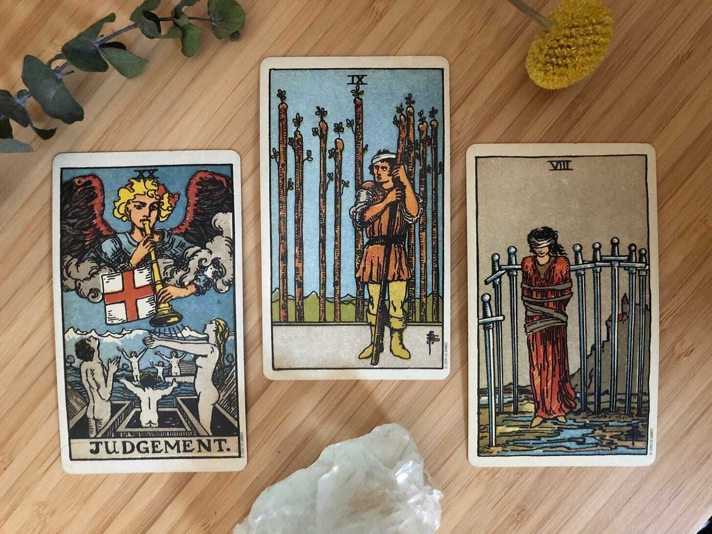 Yeesh, we have some hefty energy here, friends! “Welcome to April, let’s get serious,” the cards seem to be saying. We’ve moved from the big-picture expansiveness of The World last week and back into to the come-to-Jesus intensity of Judgment.