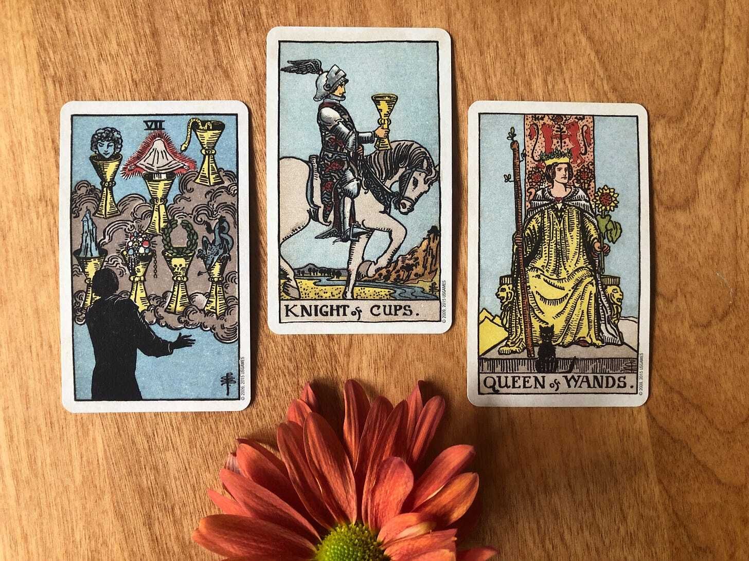 Sometimes the Seven of Cups can be a frustrating card, especially for those of us who value clear plans and actionable steps. It’ll take a bit of a trust fall, but after some splashing around in the pools of imagination, we’re emerging with energy and purpose. The Knight of Cups shows us grasping a new area of focus, or rather, a better articulated one. Have you been toying around with a wish, dream, or plan, but feel the need for it to be more direct and understandable? It’s likely that this clarity is coming your way this week. In what ways are you better able to articulate your wishes and desires after opening up your heart to imagining?