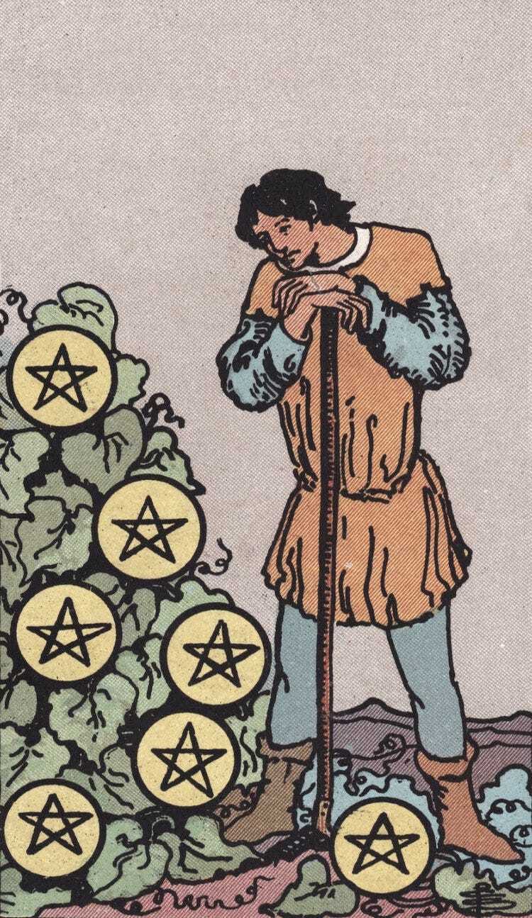 I spent a lot of time waxing poetic about how tarot is a system that illustrates the entirety of the human experience etc. etc. But it’s really true. And this feeling is wonderfully shown in the sevens of the minor arcana. A brief rundown: